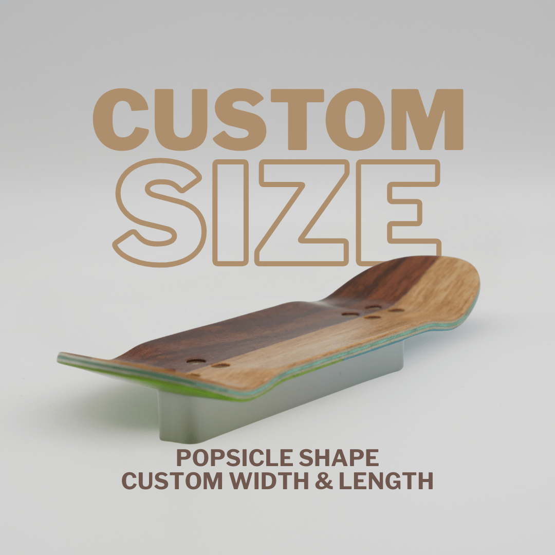 For a limited time, I am offering the option to customize your width and length preferences in a popsicle shape for the newest mold offering, the Twin Mold. Your choice can range between 26mm to 38mm wide, and 95mm to 100m long. The finished board may potentially have a very small variance within .3mm of your selected size due to the handmade nature of these products.