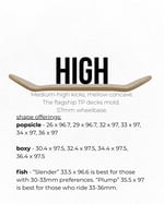 The High mold has medium-high kicks and mellow concave, designed for comfort and optimal board control. The 57mm wheelbase is a great wheelbase length for beginners and experts alike.