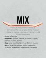 Mix - Medium kicks, mellow concave. The kicks of the medium mold, with the same mellow concave as the high mold.