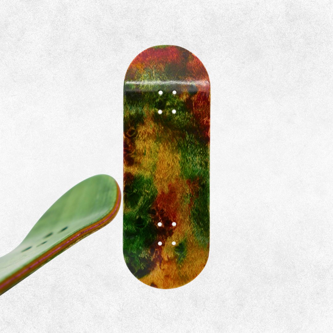 high kicks, low concave, long 59.5mm wheelbase. A deck formulated to take you back to the late 00's fingerboarding scene. Constructed with five layers of premium wood veneer, pressed with a CNC milled mold, shaped with a template and router, then finally hand sanded and finished to the highest quality standards. Each purchase includes the pictured deck, a sheet of tape, and stickers.